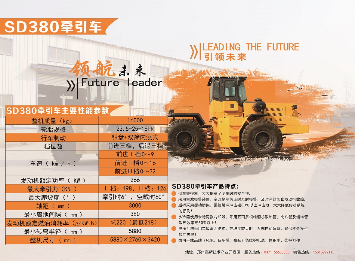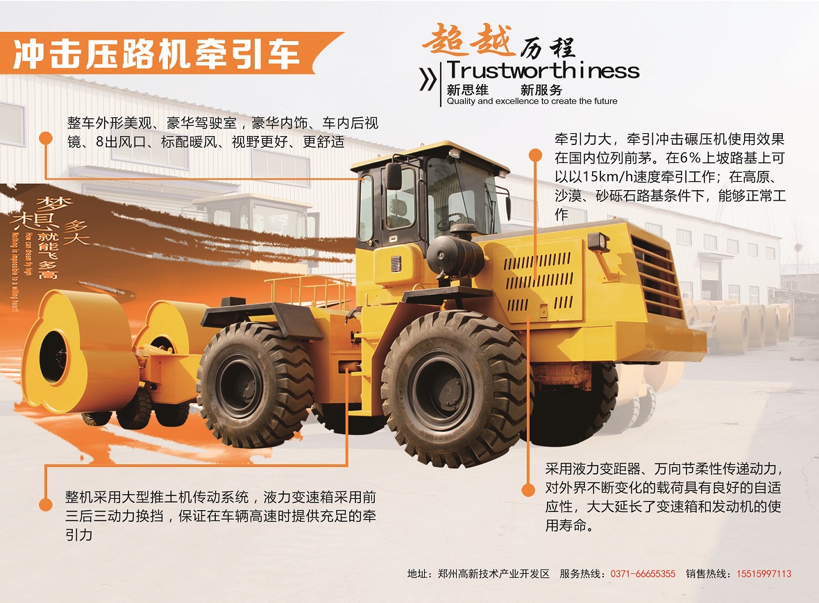 7、該車(chē)車(chē)速高,牽引力大,作業(yè)效率高,可拖掛20-30噸平板車(chē)運(yùn)送大型機(jī)械。