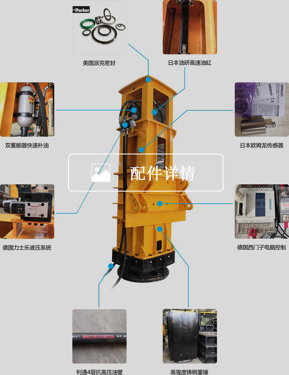 沖擊錘下落時(shí)采用電氣和液壓雙重保護(hù),可靠性高。