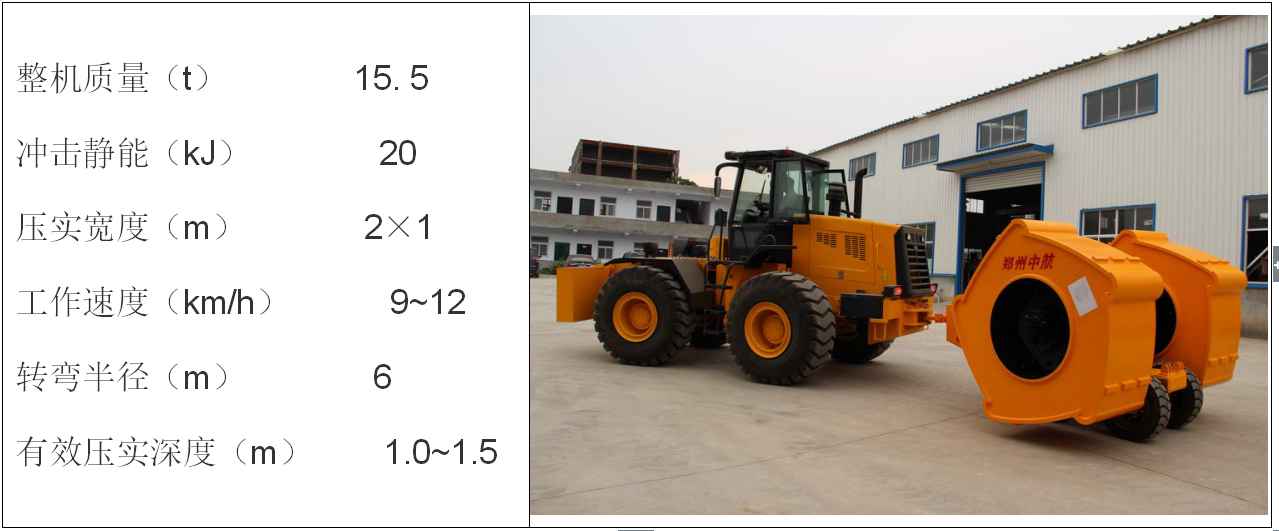 進行破碎改建項目的沖擊壓實機一般為30千焦型(太小、太輕則破碎效果不好),其性能參數(shù)如下: