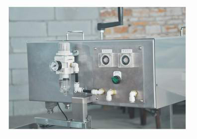 3.脫模油存儲(chǔ)于壓力罐中,以氣壓壓出脫模油,經(jīng)雙流體噴嘴與空氣混合后,形成顆粒狀并噴到烤盤上。通過調(diào)節(jié)設(shè)備上的各調(diào)節(jié)器,可方便地調(diào)出客戶所需的油量及顆粒。