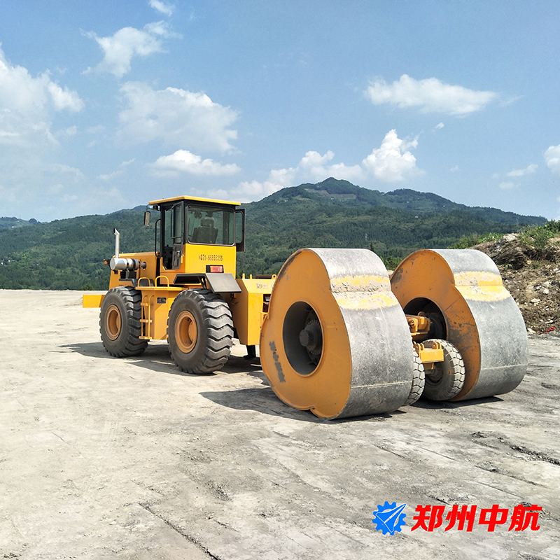 中航SD沖擊式壓路機介紹:SD系列水泥路面壓實機通過牽引車牽引,帶動一個沖擊輪,利用沖擊輪自身的重量和前進時的沖擊力,對水泥路面、路基進行破碎和壓實。