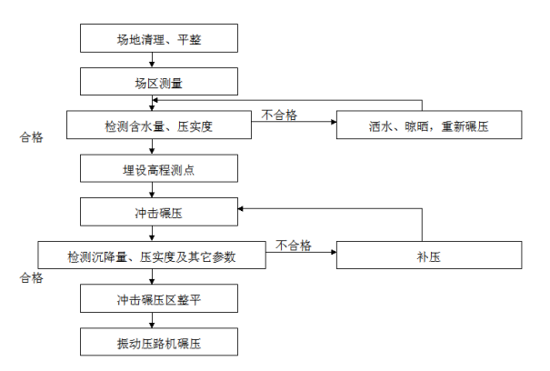 沖擊壓實施工質(zhì)量管理以施工工藝、沉降量指標控制為主,結(jié)合壓實度等指標進行控制。